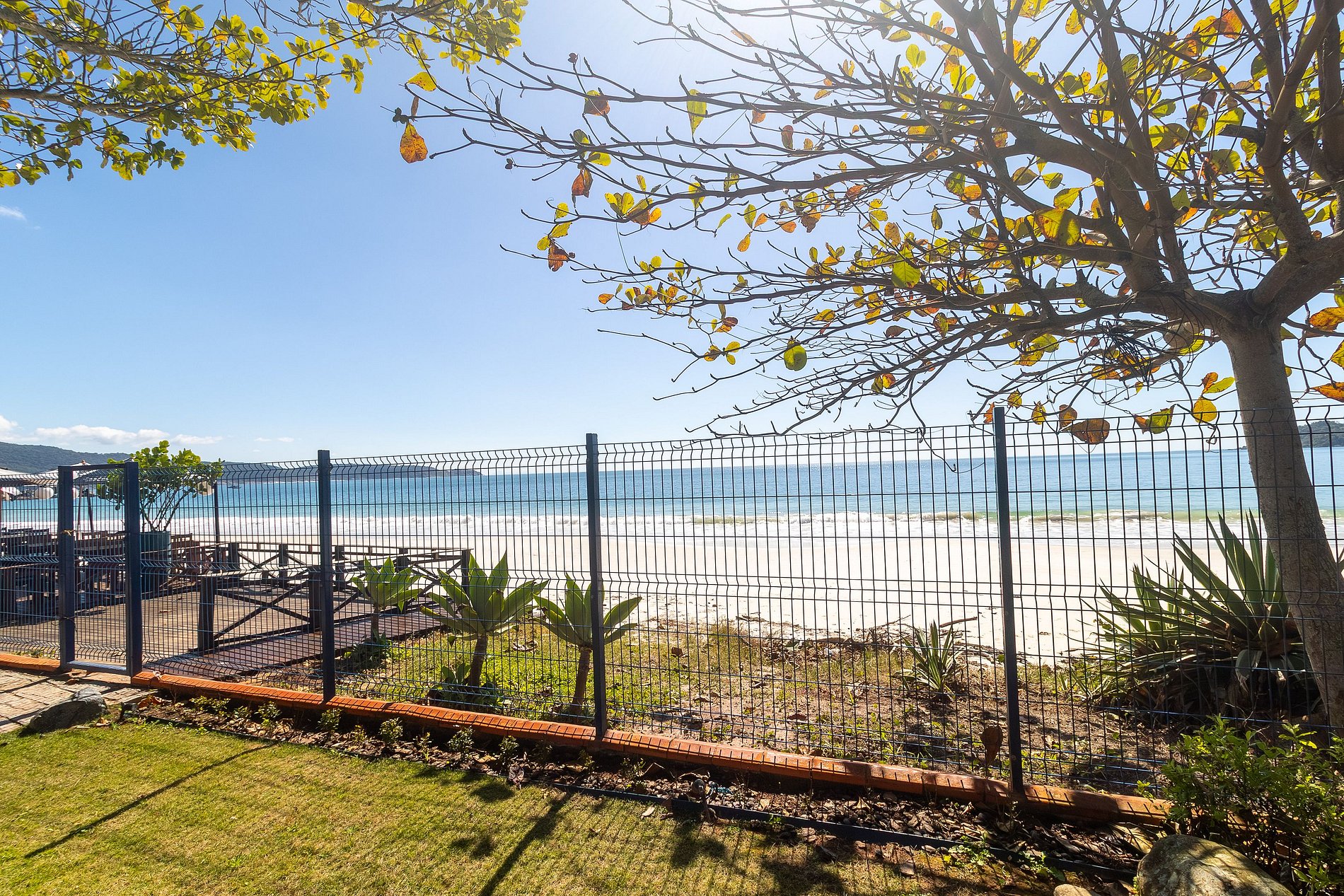 Casa azul frente a la playa en el centro de Bombinhas. Con un amplio jardín y acceso directo a la playa. La casa de dos plantas cuenta con 4 suites con minibar, cuarto de servicio, una amplia cocina con parrilla totalmente equipada con refrigerador y congelador, sala de estar, sala de televisión, estudio, comedor, balcón y estacionamiento descubierto para hasta 4 autos. La casa proporciona ropa de cama a todos los huéspedes,así como sillas de playa disponibles para su estancia.