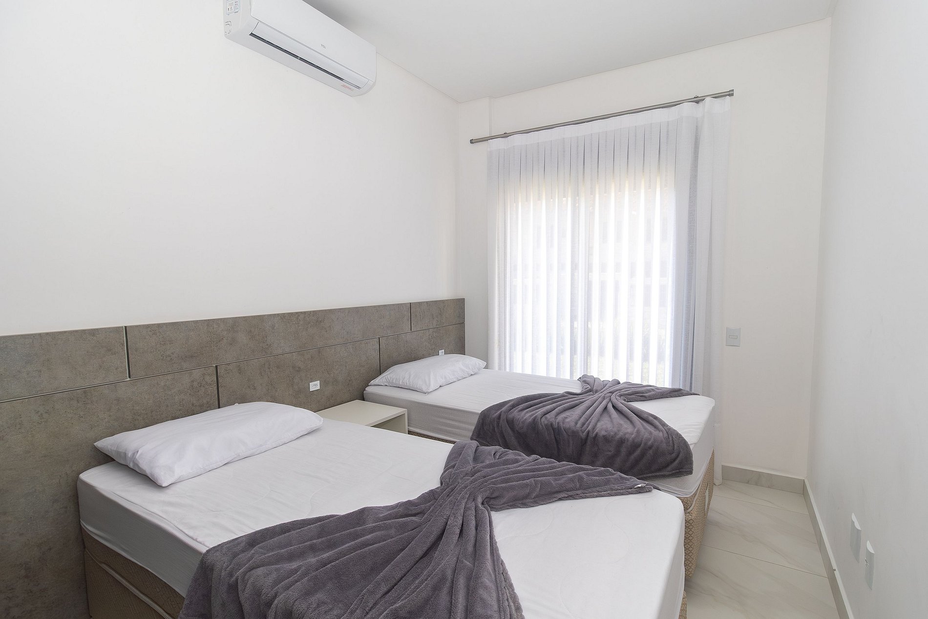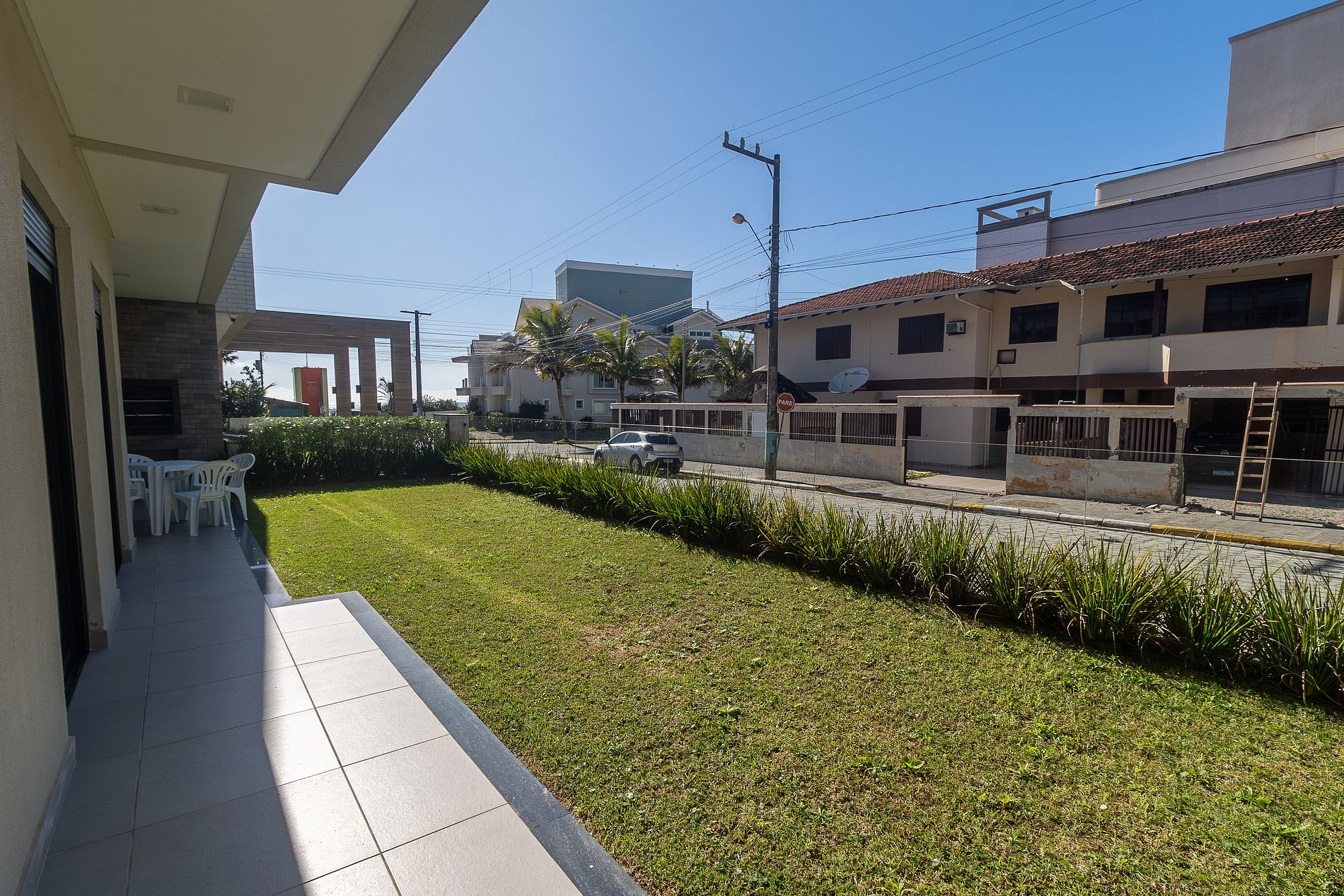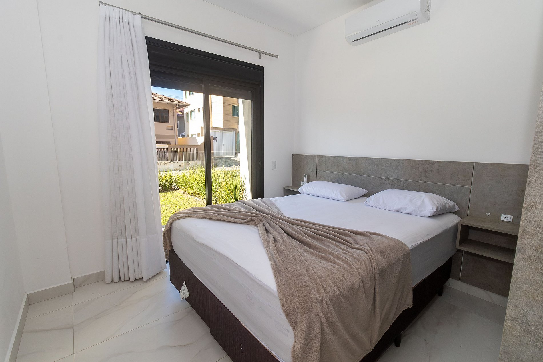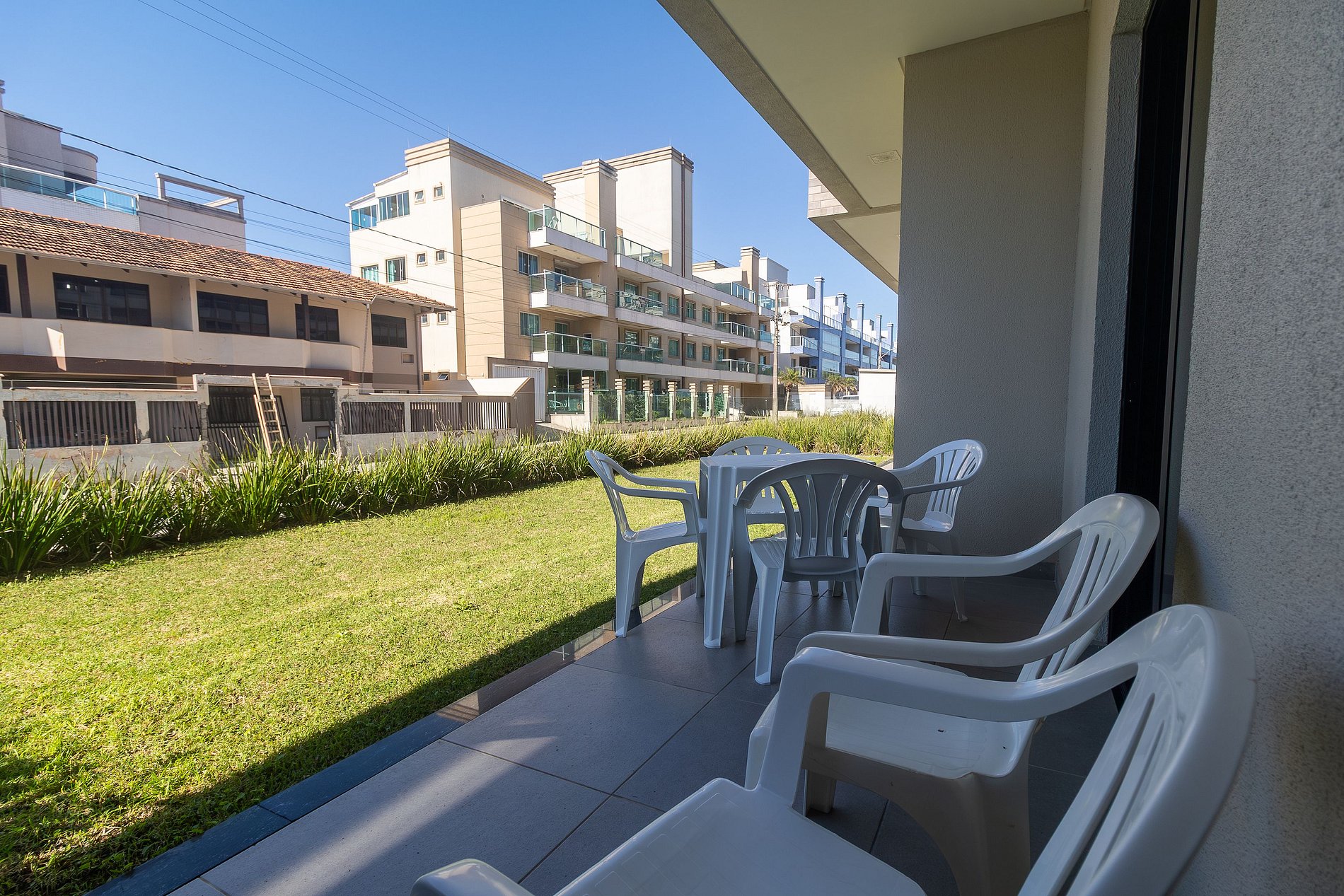 Acogedor apartamento en planta baja para vacaciones en Bombinhas. Cuenta con 3 dormitorios, uno de ellos en suite, todos con aire acondicionado, salón con un cómodo sofá y TV, cocina totalmente equipada con menaje, lavadero con lavadora y amplio jardín con barbacoa. A solo 50 metros del mar. Wi-Fi y aparcamiento incluidos. Máxima comodidad para su estancia. Ropa de cama disponible. Cuenta con sillas de playa y sombrillas.