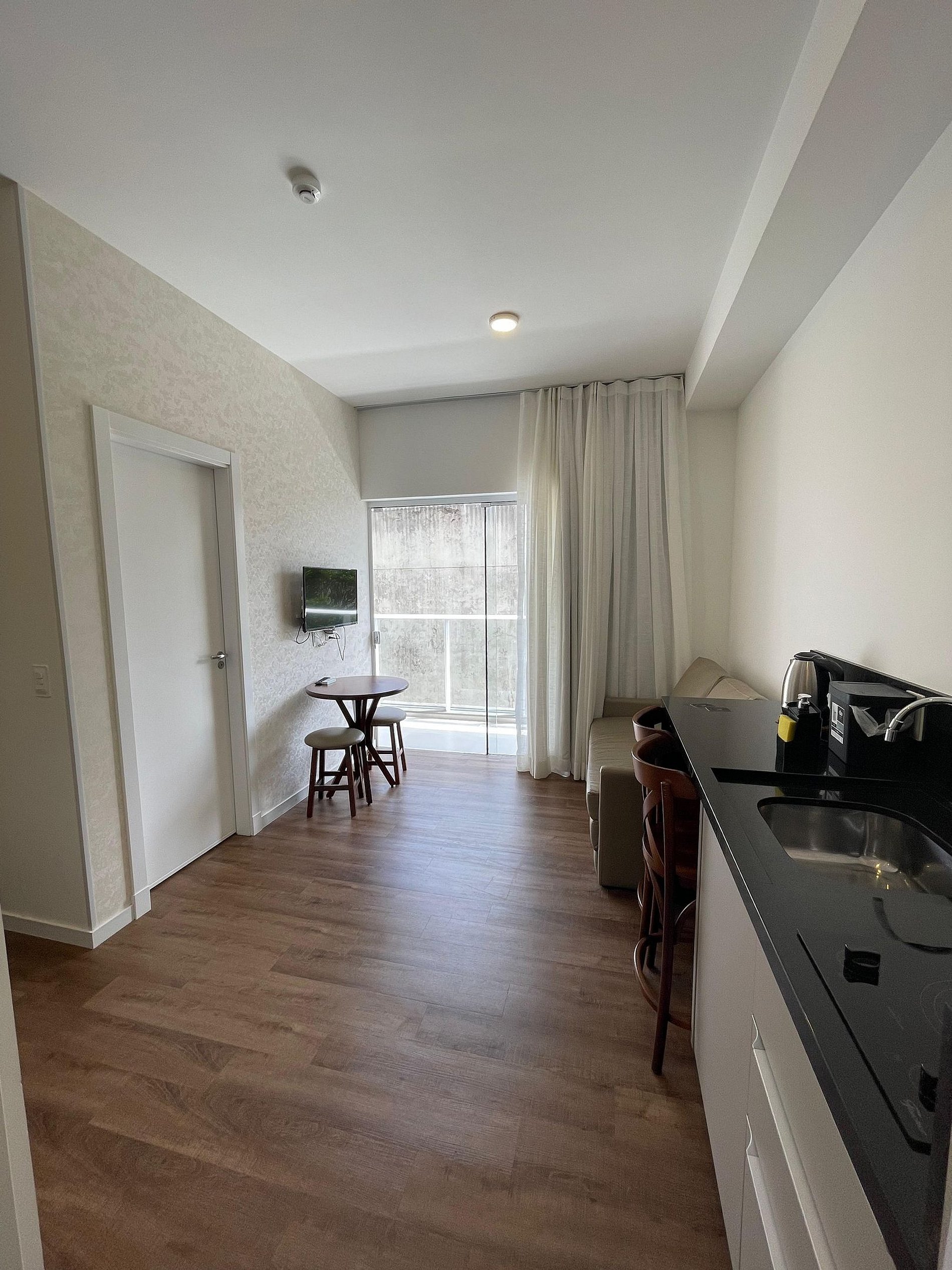 o local é extremamente pequeno, com 2 crianças fica apertado, mas a infraestrutura do prédio compensa, a brinquedoteca é ótima, e piscinas quentinhas, tudo bem limpo, não tem roupas de cama poderia estar descrito mais específico no anúncio, no check-in tivemos problem comunicação com a anfitriã, mas resolvido rapidamente, mesmo com alguns detalhes, ficaríamos novamente, é muito perto da praia, tranquilo pra ir de ape, cheio de lugares pra comer perto, mercado e farmácia perto. faz tudo ape, não tem "lugar pra fazer comida" poucos utensílios, só serve pra esquentar algo digamos, mas quebra um galho a cozinha. o sofá cama bem confortável também, a anfitriã responde monossilabica, não dá muita atenção, mas ela procurou resolver tudo rapidamente. Diria pros prox hóspedes se organizarem com lençóis, e coisas pra comer, se tem crianças, sair pois espaço é pequeno e crianças ficam doidas, ah! a TV é ótima, tem Netflix e YouTube pra desenhos. o local do flat funciona como hotel.