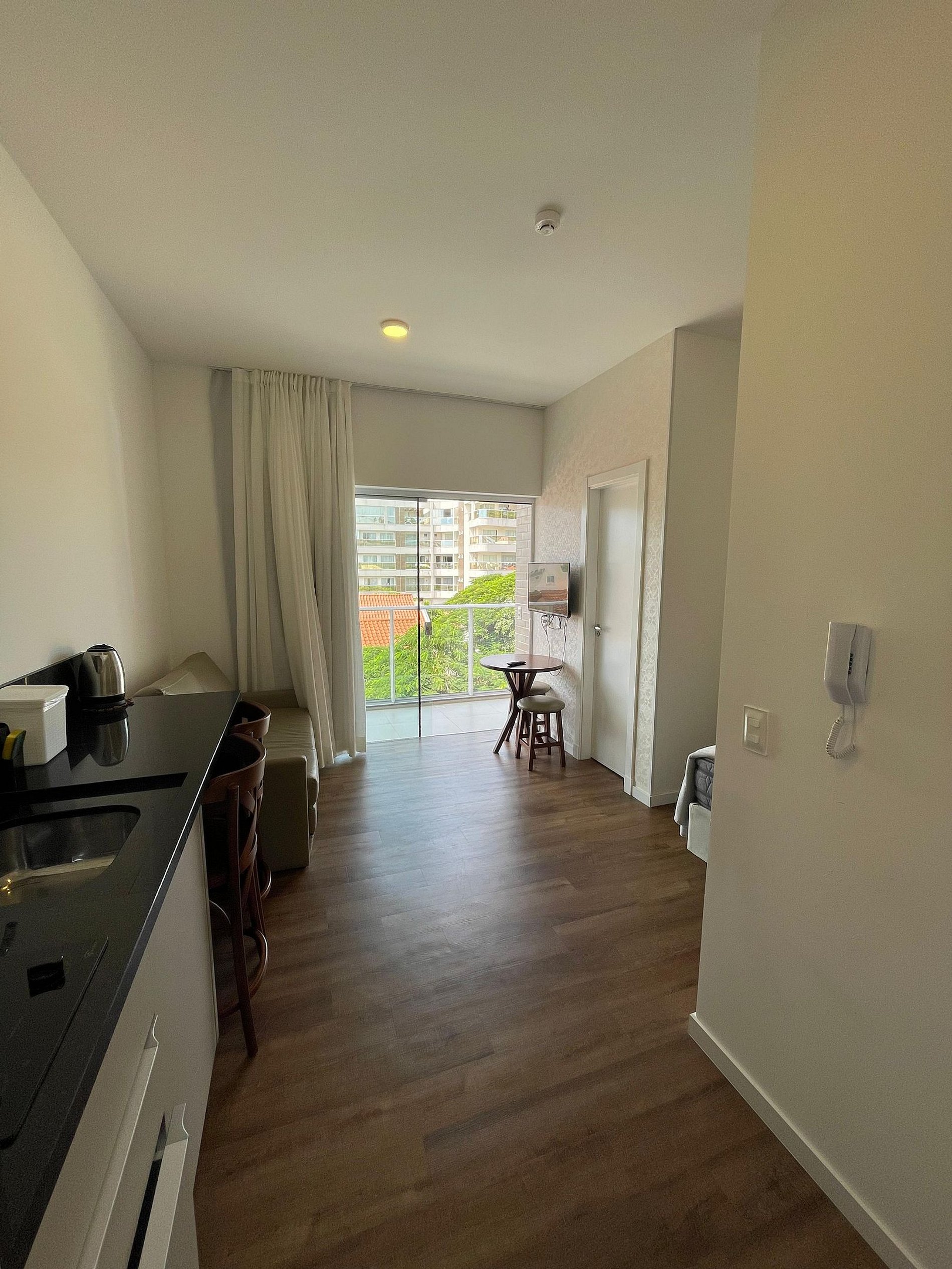 Adoramos nossa estadia. Os empregados do apart hotel são super queridos e nos atenderam maravilhosamente bem, e com muita simpatia. As piscinas aquecidas também são excelentes. O apartamento é exatamente como nas fotos, suficiente para um casal e uma criança passar alguns dias com conforto. A localização é excelente, bem no meio da praia de Bombinhas, uma quadra da areia, com várias opções de restaurantes, mercadinhos, lojas, etc. Esperamos voltar em breve.