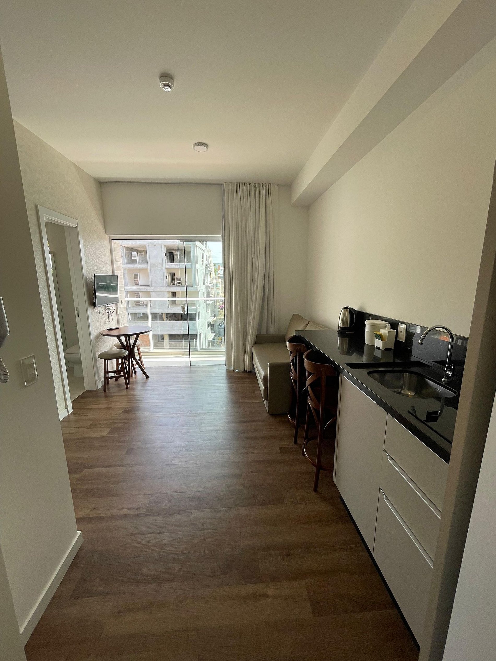 Foi incrível!! O lugar é melhor que as expectativas nos surpreendeu bastante! A estrutura que o apart oferece é ótima! Pena que não demos sorte em dias de sol, queremos voltar com certeza para aproveitar aquela piscina incrível em um dia de sol. Lugar apaixonante, sem dúvidas. Perto de tudo, super fácil acesso, pertinho da praia, bem localizado e tranquilo, sem conta à vista, linda demais! Amamos o lugar 💜