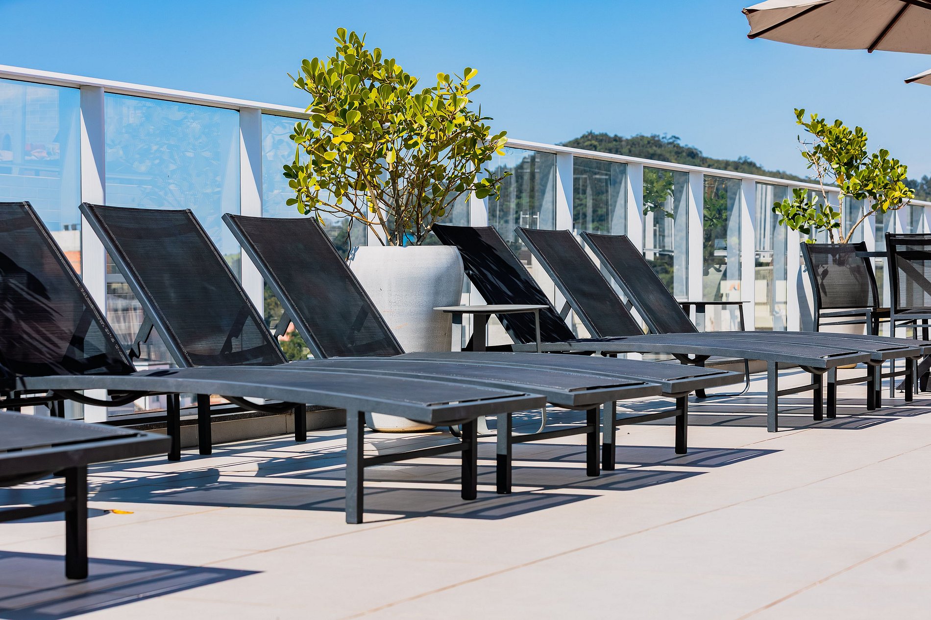Ótimo Atendimento dos funcionários do Flat Localização Privilegiada Limpeza e Organização Piscina Aquecida Vista da Piscina maravilhosa Flat muito bem decorado e cômodo Estacionamento com manobrista e gratuito Fornecimento de Cadeiras de praia e guarda sol